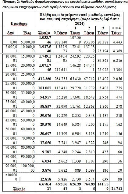 - 16% για φορολογούμενους με πέντε εξαρτώμενα τέκνα κτλ.