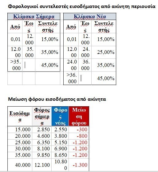 Μειώνονται κατά 2% οι συντελεστές της κλίμακας από τα 10.000 έως και τα 40.000 ευρώ: