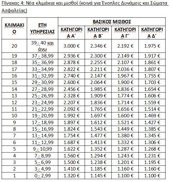 Η αύξηση του βασικού μισθού με βάση τα έτη Υπηρεσίας είναι η ίδια με αυτή των Ενόπλων Δυνάμεων.