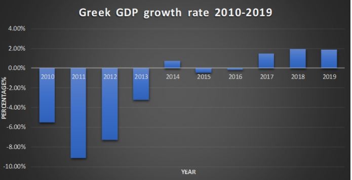 Η ελληνική οικονομία υποχώρησε με ρυθμούς ρεκόρ κατά 14% κατά το β’ τρίμηνο του 2020, ενώ, την ίδια ώρα, η ελληνική κυβέρνηση προκειμένου να «θεραπεύσει» την οικονομία έχει βάλει τη χώρα σε τροχιά για χρέος στο 200% του ΑΕΠ, όπως έχει προβλέψει και το Διεθνές Νομισματικό Ταμείο. Στο μεταξύ, το έλλειμμα του προϋπολογισμού έχει φτάσει σε νέα υψηλά (περί το 7%).