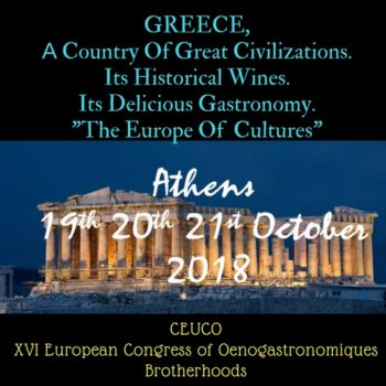 Η Ελλάδα γίνεται το κέντρο γαστρονομίας και οίνου της Ευρώπης αφού θα διεξαχθεί το 16ο Ευρωπαϊκό Συμβούλιο Αδελφοτήτων Γαστρονομίας & Οινολογίας, καθώς η Λέσχη Αρχιμαγείρων Αττικής ”Ακρόπολις” υστέρα από συντονισμένες προσπάθειες εξασφάλισε την πραγματοποίηση του συνέδριου στην Αθήνα στις 19-20-21 Οκτωβρίου 2018 στο Ζάππειο. Στα συνέδρια αυτά θα συμμετάσχουν δεκάδες Ευρωπαϊκές χώρες ξεπερνώντας τα 500 άτομα.