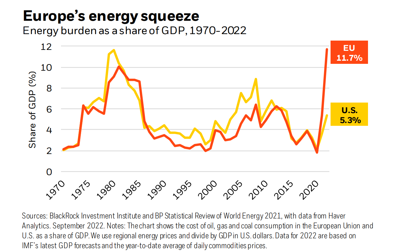 «Η ενεργειακή κρίση θα οδηγήσει σε ύφεση την Ευρώπη, όπως υποστηρίζουμε από τον Μάρτιο» αναφέρουν οι αναλυτές της BlackRock. «Η κρίση έχει επιδεινωθεί από τότε καθώς η Ρωσία έχει σταματήσει τις προμήθειες φυσικού αερίου. Επιπλέον, η Ευρωπαϊκή Κεντρική Τράπεζα (ΕΚΤ) δεν παραδέχεται ότι θα συντρίψει περαιτέρω την οικονομική δραστηριότητα προσπαθώντας να καταπολεμήσει τον υψηλό πληθωρισμό. Πιστεύουμε ότι η ΕΚΤ θα ξυπνήσει σε αυτή την πραγματικότητα νωρίτερα από ό,τι αναμένουν οι αγορές – αλλά όχι πριν αντιμετωπίσει αναπόφευκτα μία σοβαρή ύφεση».