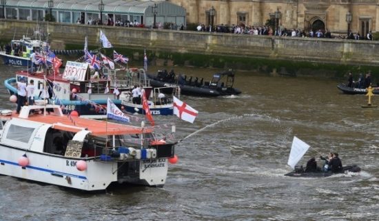 Τα σκάφη που επέβαιναν συγκρούστηκαν μεταξύ τους, ενώ οι Φάρατζ περιόδευε συνοδεία και άλλων πλοίων, διαδηλώνοντας την πεποίθησή του για έξοδο από την Ευρωπαϊκή Ένωση.