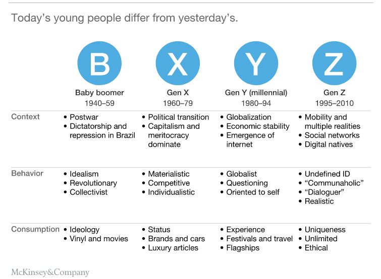 Η τάση αυτή δεν είναι, φυσικά, ελληνικό φαινόμενο. Είναι προφανώς παγκόσμιο. Στη Βραζιλία, η Gen Z αποτελεί ήδη το 20% του πληθυσμού της χώρας. Η γνωστή εταιρεία McKinsey συνεργάστηκε πρόσφατα με της Box1824, έναν ερευνητικό οργανισμό που ειδικεύεται στις τάσεις των καταναλωτών κι έκαναν μια έρευνα η οποία διερευνά τις συμπεριφορές αυτής της νέας γενιάς και την επιρροή της για τα καταναλωτικά πρότυπα συνολικά στη Βραζιλία. Σκοπός ήταν να κατανοήσουμε με ποιον τρόπο οι απόψεις της νέας γενιάς θα μπορούσαν να επηρεάσουν τον ευρύτερο πληθυσμό, καθώς και την κατανάλωση εν γένει.