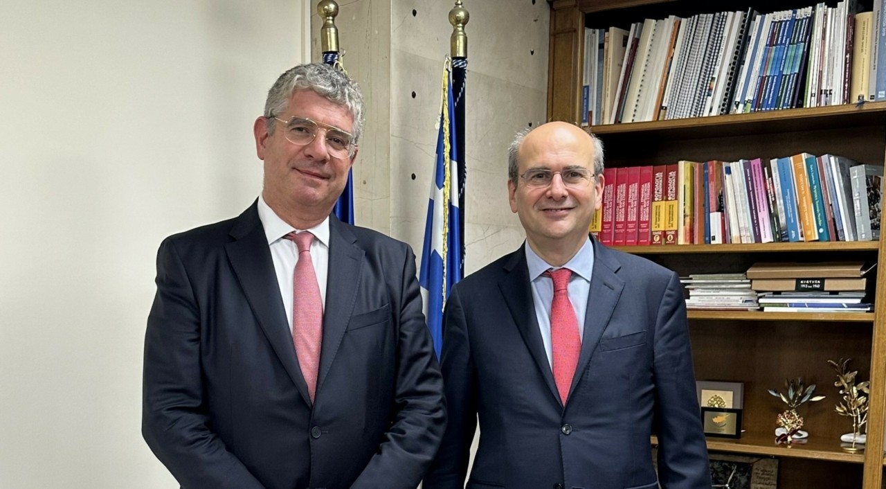 Ο Υπουργός Εθνικής Οικονομίας και Οικονομικών Κωστής Χατζηδάκης συναντήθηκε σήμερα με τον νέο Έλληνα αντιπρόεδρο της Ευρωπαϊκής Τράπεζας Επενδύσεων, κ. Γιάννη Τσακίρη.