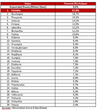 Κόστος στέγασης στο διαθέσιμο εισόδημα: η Ελλάδα με τη μεγαλύτερη επιβάρυνση στην ΕΕ