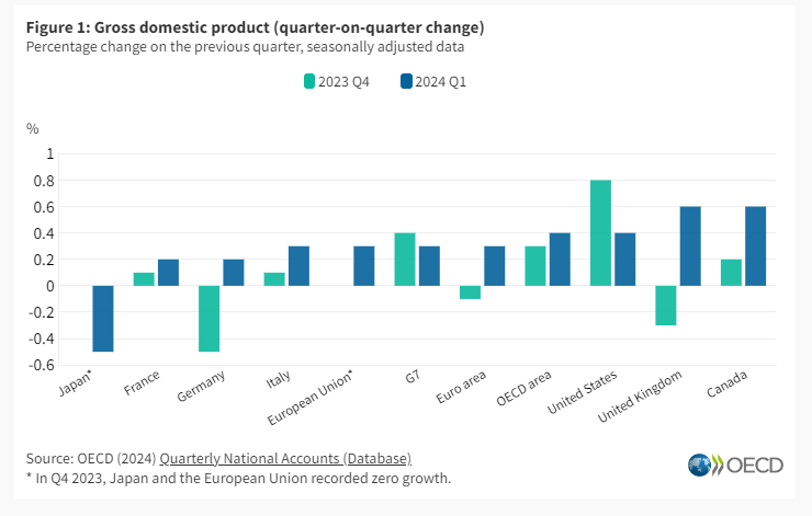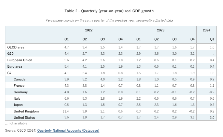 Με υψηλό ρυθμό κινείται η ανάπτυξη της ελληνικής οικονομίας σε επίπεδο α’ τριμήνου 2024, συγκριτικά με το μέσο όρο των χωρών του Οργανισμού Οικονομικής Συνεργασίας και Ανάπτυξης, της Ευρωπαϊκής Ένωσης, της Ευρωζώνης, καθώς και των G7.