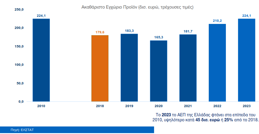 Το μέγεθος της ελληνικής οικονομίας άγγιξε και, πλέον, το 2023 αναμένεται να φτάσει στο ύψος που ήταν τη χρονιά που μπήκε η Ελλάδα στα Μνημόνια.