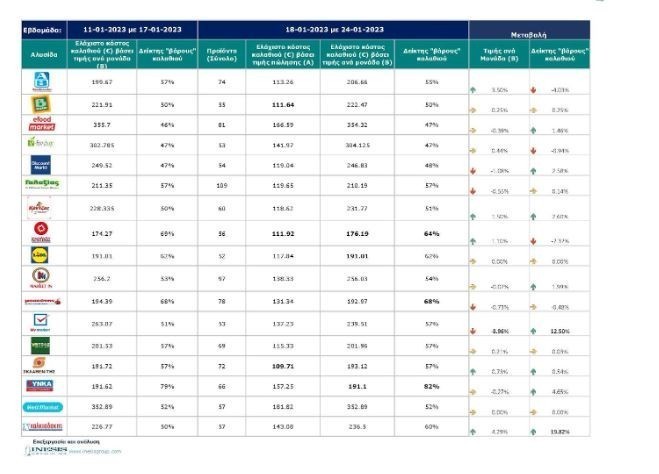 Ειδικότερα, οι 4 από τις 6 αλυσίδες οι οποίες κατέχουν το μεγαλύτερο μερίδιο της αγοράς, φαίνεται να έχουν εξαντλήσει τις προσπάθειες μείωσης του ελάχιστου κόστους και το καλάθι τους να αρχίσει σε κάποιες από αυτές να επηρεάζεται από τις επερχόμενες ανατιμήσεις.