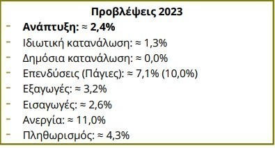 Ανάπτυξη της ελληνικής οικονομίας κατά 2,4% μέσα στο 2023 «βλέπει» το Ίδρυμα Οικονομικών και Βιομηχανικών Ερευνών (ΙΟΒΕ), αναθεωρώντας αισθητά την εκτίμηση του περασμένου Ιανουαρίου (1,4%).