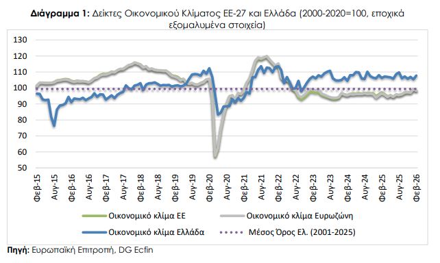Ωστόσο, το ήδη επιβαρυμένο διεθνές περιβάλλον αβεβαιότητας επιδεινώνεται δραματικά μετά τις πολύ πρόσφατες επιθέσεις στο Ιράν, με τις πολεμικές και άλλες γεωπολιτικές εξελίξεις να χαρακτηρίζονται από υψηλή απροβλεψιμότητα. Η επίδρασή τους στο εγχώριο οικονομικό κλίμα το προσεχές διάστημα θα εξαρτηθεί από τη χρονική διάρκεια και τη γεωγραφική έκταση της νέας παγκόσμιας κρίσης, καθώς και από το κατά πόσο θα διαφανεί σύντομα προοπτική αποκλιμάκωσης.