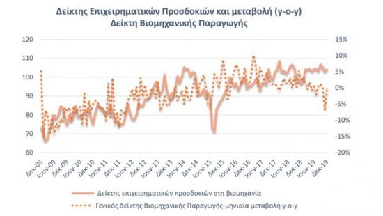 Ο Δείκτης Επιχειρηματικών Προσδοκιών στη Βιομηχανία βελτιώθηκε τον Δεκέμβριο, στις 104,2 (από 102,9 τον Νοέμβριο) μονάδες, επίπεδο υψηλότερο από το αντίστοιχο περυσινό (96,4 μον.). Στην ανοδική τάση του δείκτη συνεχίζουν να συμβάλλουν οι αναπτυξιακές επενδυτικές προοπτικές σε συνδυασμό με παρεμβάσεις στη φορολογία, αλλά και σε άλλα ζητήματα που περιλαμβάνονται στο νέο αναπτυξιακό πολυνομοσχέδιο.