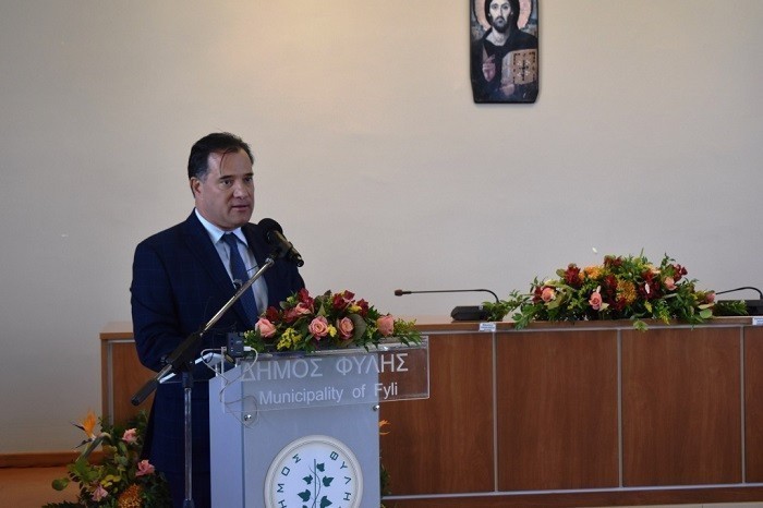 Στον χαιρετισμό του ο κ. Άδωνις Γεωργιάδης επεσήμανε: «Είμαι εξαιρετικά υπερήφανος που ως υπουργός Ανάπτυξης και Επενδύσεων έρχομαι για δεύτερη φορά επί θητείας μου στον Δήμο Φυλής για ένα σπουδαίο έργο, την ωρίμανση του οποίου χρηματοδοτήσαμε και θα υλοποιηθεί μέσω ΣΔΙΤ: Τη μετεγκατάσταση των μεταφορικών επιχειρήσεων Ελαιώνα σε ακίνητο του Δήμου Φυλής, προϋπολογισμού 400 εκατ., που με τη μόχλευση θα υπερβούν το 1 δισ. ευρώ δημιουργώντας 2.800 θέσεις εργασίας κατά την κατασκευή και ισάριθμες κατά τη λειτουργία του. Πρόκειται για ένα έργο που θα αλλάξει τελείως και την περιοχή της Φυλής αλλά και τον Ελαιώνα.
