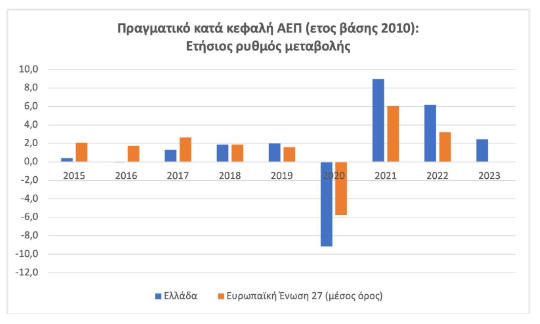 Κατά συνέπεια, τα τελευταία χρόνια η Ελλάδα, σε μια πολύ δύσκολη περίοδο έντονων πληθωριστικών πιέσεων και «ροκανίσματος» της αγοραστικής δύναμης των πολιτών, πέτυχε υψηλή ανάπτυξη, αύξηση μισθών και μείωση της ανεργίας χωρίς διεύρυνση ανισοτήτων.