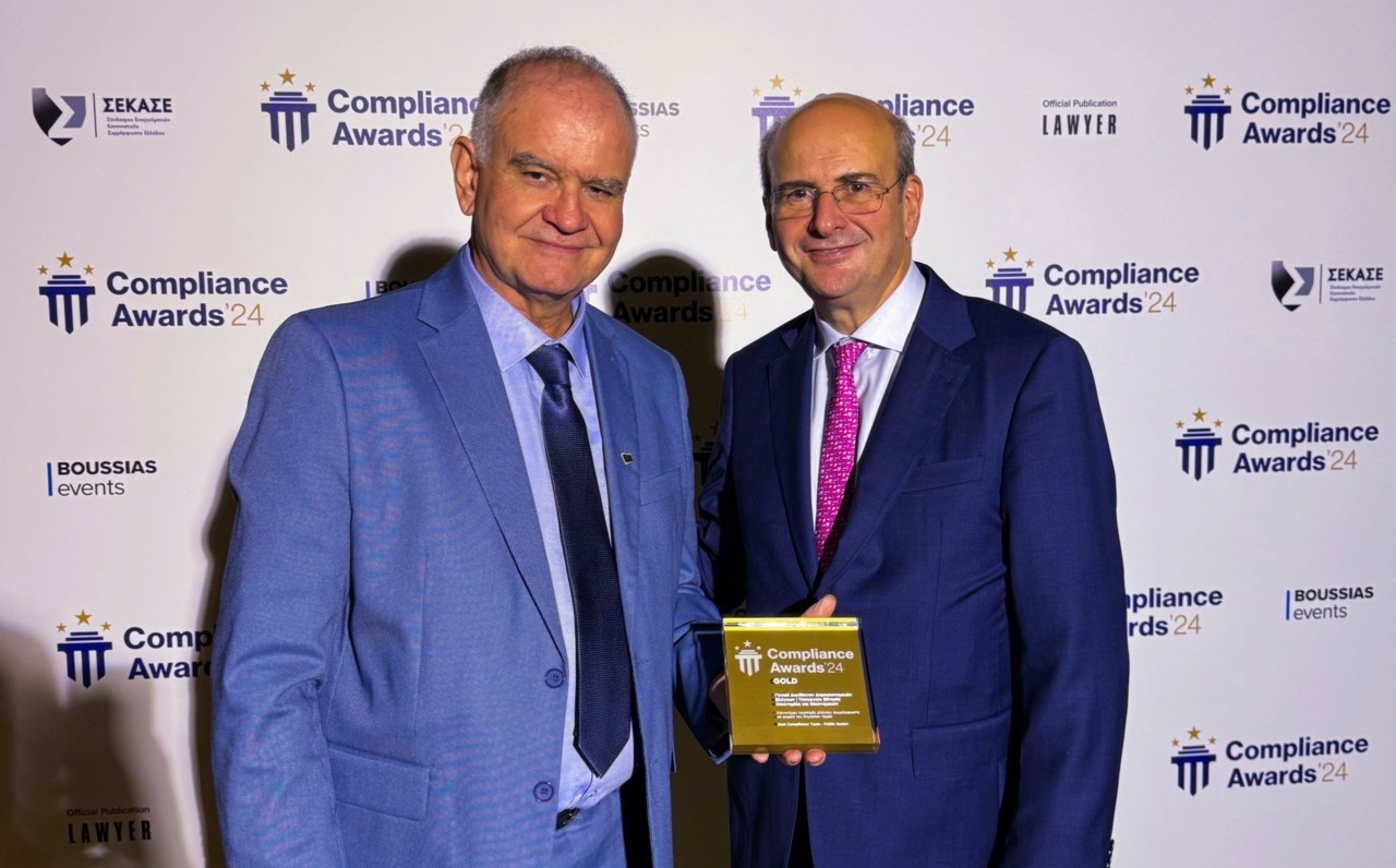 Η Γενική Διεύθυνση Δημοσιονομικών Ελέγχων (ΓΔΔΕ) του Υπουργείου Εθνικής Οικονομίας και Οικονομικών απέσπασε το Χρυσό Βραβείο στην κατηγορία “Compliance Team of the Year – Public Sector” στα Compliance Awards 2024. Ειδικότερα όπως αναφέρεται στη σχετική ανακοίνωση, «το βραβείο αυτό αποτελεί αναγνώριση του σημαντικού έργου της Γενικής Διεύθυνσης Δημοσιονομικών Ελέγχων στον τομέα της κανονιστικής συμμόρφωσης και της συμβολής της στην ενίσχυση της διαφάνειας και της χρηστής δημοσιονομικής διαχείρισης.