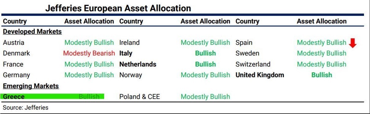 Το πραγματικά καλό νέο για την Ελλάδα που σημειώνει η Jefferies είναι ότι η ανεργία των νέων έχει μειωθεί σε επίπεδο χαμηλότερα του 25% και κινείται προς τα χαμηλά του 2008. Η Ελλάδα εφάρμοσε σημαντικές μεταρρυθμίσεις μέσα στην πανδημία και η Jefferies βλέπει ότι η πιθανότατα η ανάπτυξη του 2021 να ξαφνιάσει θετικά και να διαμορφωθεί περίπου στο 8% είναι υψηλή. Όπως τονίζει ο οίκος, η Ελλάδα εμφάνισε ένα από τα μεγαλύτερα turnarounds φέτος.