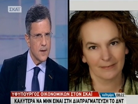 Αναφερόμενη στον Γερμανό υπουργό Οικονομικών Βόλφγκανγκ Σόιμπλε, τόνισε πως θα πρέπει να καταλάβει ότι δεν είναι η μοναδική δύναμη στην ΕΕ, ενώ παράλληλα εξέφρασε την άποψη ότι θα ήταν καλύτερο το ΔΝΤ να μην είναι στην διαπραγμάτευση. «Δεν είναι μόνο ο Σόιμπλε, υπάρχουν κι άλλοι. Συλλογικά η ΕΕ θα πρέπει να λύσει τα προβλήματά της. Κι αυτό τουλάχιστον ο κ. Σόιμπλε θα πρέπει να το καταλάβει, ότι δεν είναι η μοναδική δύναμη στην ΕΕ», ανέφερε χαρακτηριστικά.