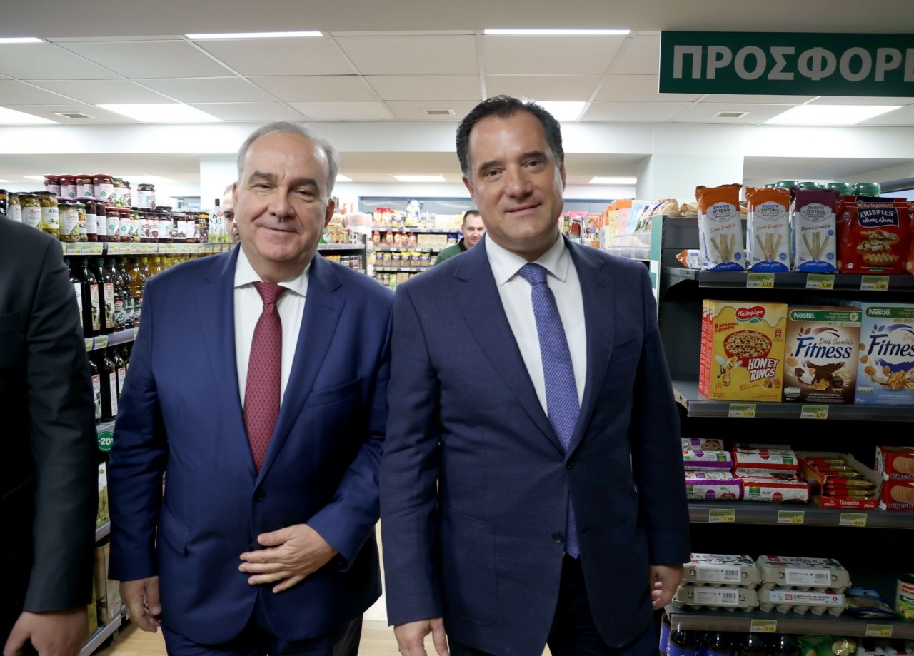 Αυτό ανακοινώθηκε σήμερα από τον υπουργό Ανάπτυξης και Επενδύσεων Άδωνι Γεωργιάδη και από τον αναπληρωτή υπουργό, Νίκο Παπαθανάση, κατά την επίσκεψή τους σε δύο καταστήματα των αλυσίδων σούπερ μάρκετ «Market In» και «My Market», καθώς την εβδομάδα που πέρασε κατέγραψαν τη μεγαλύτερη μείωση στις τιμές των προϊόντων του «Καλαθιού του Νοικοκυριού».