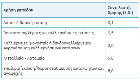 β) Συντελεστής Χρήσης, ο οποίος ορίζεται ανάλογα με τη χρήση του γηπέδου: