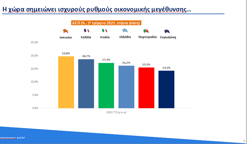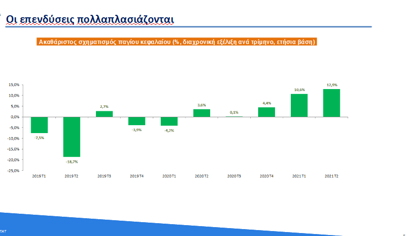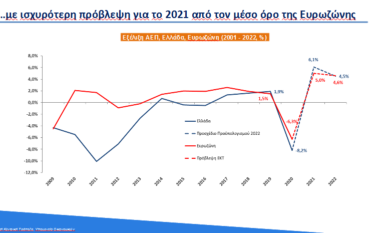 « Εάν και ο Προϋπολογισμός του 2022 καταρτίζεται για δεύτερο συνεχόμενο έτος υπό το καθεστώς αβεβαιότητας που προκαλεί η παγκόσμια υγειονομική κρίση και οι τρέχουσες διεθνείς εξελίξεις στις τιμές, έχουν ήδη καταγραφεί τα πρώτα θετικά μακροοικονομικά αποτελέσματα, μετά τη σταδιακή υποχώρηση των άμεσων οικονομικών επιπτώσεων της πανδημικής κρίσης. Για αυτόν τον σκοπό, ο ρυθμός ανάπτυξης για το έτος 2021 αναθεωρείται σημαντικά προς τα άνω, από 3,6% που προβλεπόταν στο ΜΠΔΣ 2022-2025, σε 6,1%. Αυτό σηματοδοτεί ότι, σε σχέση με την ύφεση ύψους 8,2% που παρατηρήθηκε το 2020, η οικονομία έχει ήδη καλύψει άνω των 2/3 του απολεσθέντος εγχώριου προϊόντος, εντός μάλιστα ενός έτους, που κατά το πρώτο εξάμηνο υπήρχαν ακόμη σε ισχύ σημαντικά περιοριστικά μέτρα στην άσκηση της οικονομικής δραστηριότητας.