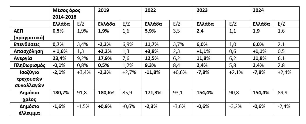 Χρόνο με το χρόνο η Ελλάδα τα πάει καλύτερα σχεδόν σε όλα τα μέτωπα, σύμφωνα με τις εαρινές οικονομικές προβλέψεις της Κομισιόν. Η πρόοδος αυτή προκύπτει όχι μόνο με βάση το 2019, ούτε με ό,τι ίσχυε στην πενταετία 2014 – 2018, αλλά και σε σύγκριση με τις χώρες της Ευρωζώνης συνολικά.