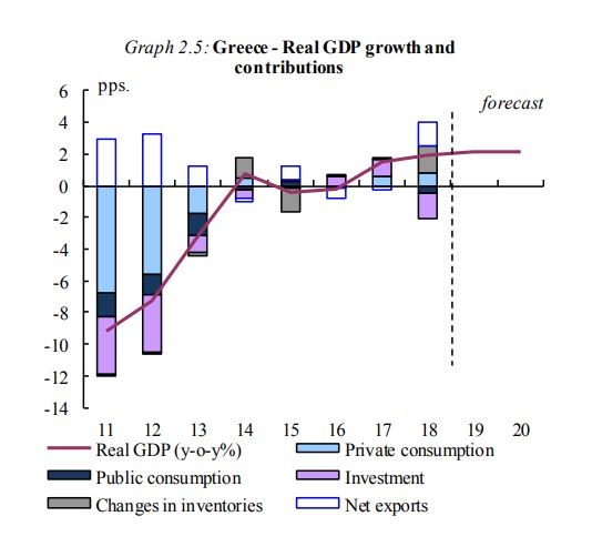 Παρ’ όλα αυτά, η Κομισιόν αναφέρει ότι η Ελλάδα είναι το μόνο κράτος της Ευρωζώνης στο οποίο καταγράφεται επιτάχυνση της ανάπτυξης την 2ετία 2019- 2020 σε σύγκριση με το 2018.