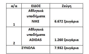 Επίσης κατασχέθηκαν εντός του εμπορευματοκιβωτίου και 36 χαρτοκιβώτια τα οποία περιείχαν 432 ζεύγη ανώνυμα υποδήματα, τα οποία χρησιμοποιήθηκαν ως προκάλυμμα («τάπα») από τους παράνομους εισαγωγείς για να αποκρύψουν τα απομιμητικά υποδήματα και να παραπλανήσουν τις τελωνειακές αρχές.