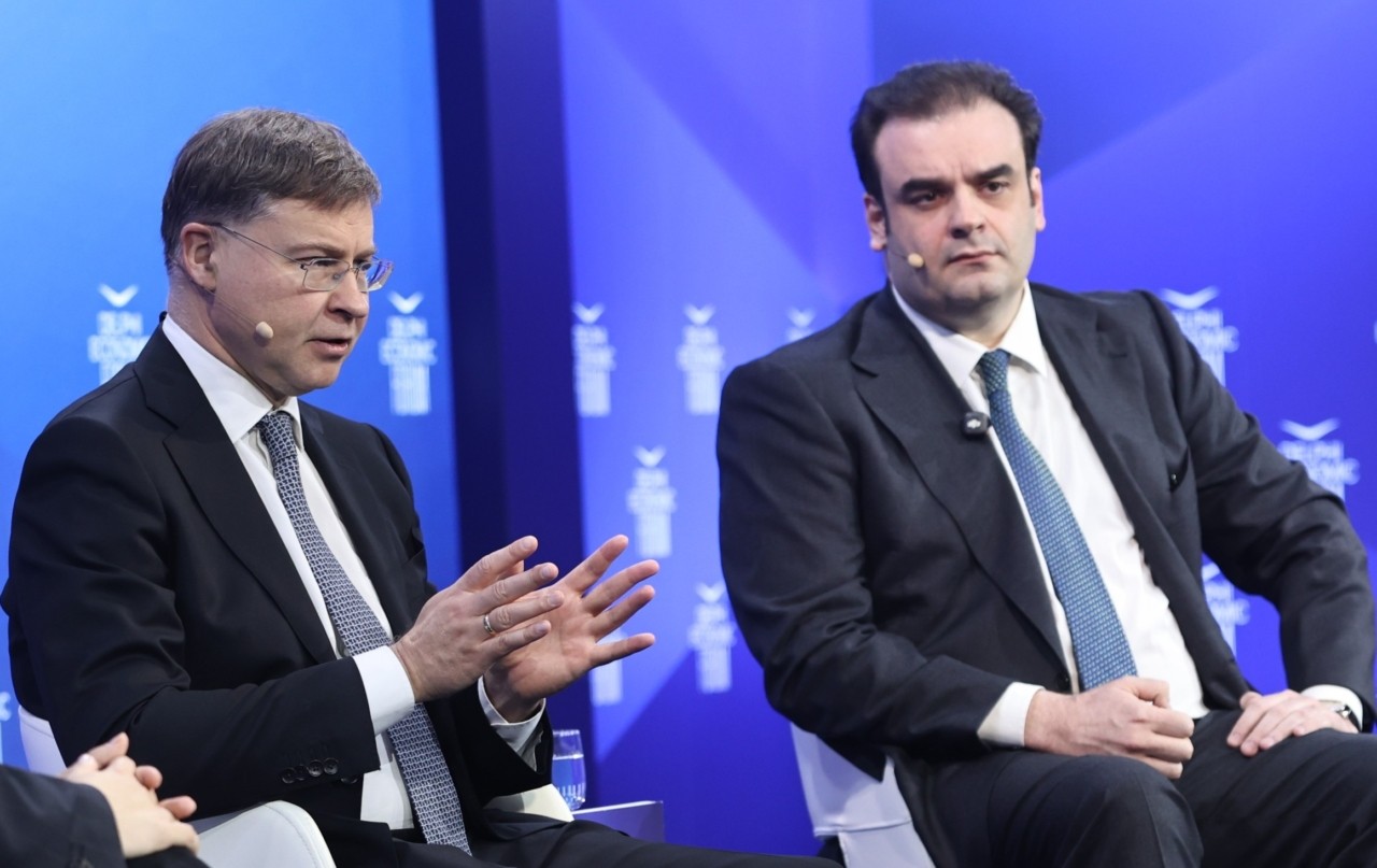 Ολοκληρώθηκε προ ολίγου, στο πλαίσιο του Οικονομικού Φόρουμ των Δελφών, η συζήτηση με τίτλο «Ευρωπαϊκή Ευημερία σε μια Εποχή Παγκόσμιας Αβεβαιότητας». Στο πάνελ συμμετείχε ο πρόεδρος του Eurogroup και υπουργός Εθνικής Οικονομίας και Οικονομικών, Κυριάκος Πιερρακάκης. Μαζί του, βρέθηκε o Ευρωπαίος Επίτροπος Οικονομίας και Παραγωγικότητας, Εφαρμογής και Απλούστευσης Βάλντις Ντομπρόβσκις.
