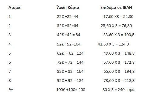 Αντίστοιχα, όσοι επέλεξαν Άυλη Κάρτα θα λάβουν δόσεις δύο μηνών, Φεβρουαρίου και Μαρτίου μαζεμένες, από 44 έως 200 ευρώ, ως εξής: