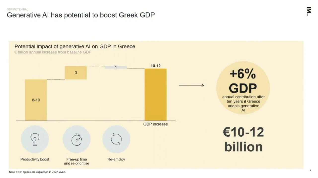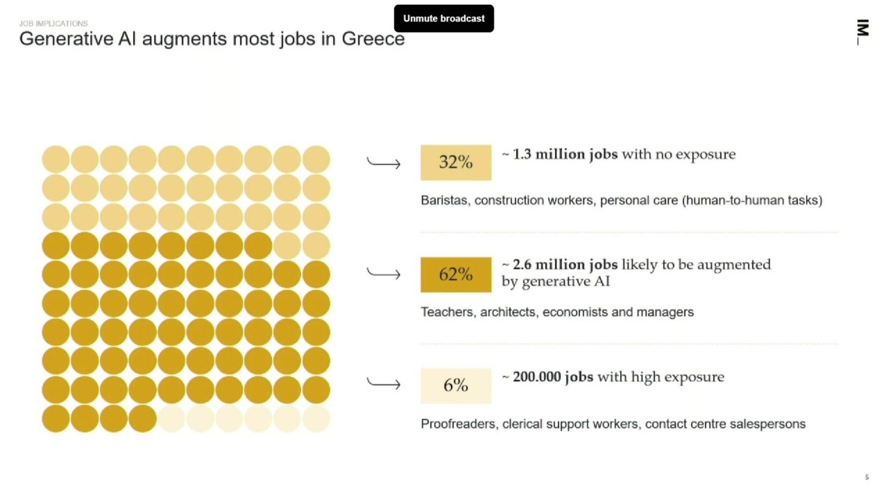 Σύμφωνα με την μελέτη, η παραγωγική ΤΝ μπορεί να επηρεάσει θετικά περίπου 2,6 εκατομμύρια θέσεις εργασίας στην Ελλάδα.