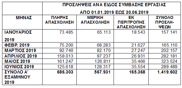 Συγκεκριμένα για το εξάμηνο Ιανουαρίου-Ιουνίου 2017, δημιουργήθηκαν 1.197.696 θέσεις εργασίας, εκ των οποίων 578.077 πλήρους απασχόλησης (ποσοστό 48,2%) και 619.619 θέσεις μερικής και εκ περιτροπής απασχόλησης (ποσοστό 51,73%-38,07% η μερική και 13,66% η εκ περιτροπής).
