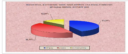 2ον)Έκρηξη της μερικής και της εκ περιτροπής απασχόλησης για τον μήνα Ιούνιο 2019 (σχεδόν 57%) και με ταυτόχρονη καθήλωση των μισθών στα 200-300 ευρώ!