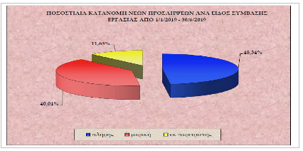 3ον)Οι θέσεις πλήρους απασχόλησης στο εξάμηνο 2019 είναι λιγότερες από αυτές της μερικής και της εκ περιτροπής απασχόλησης (48% έναντι 52%).