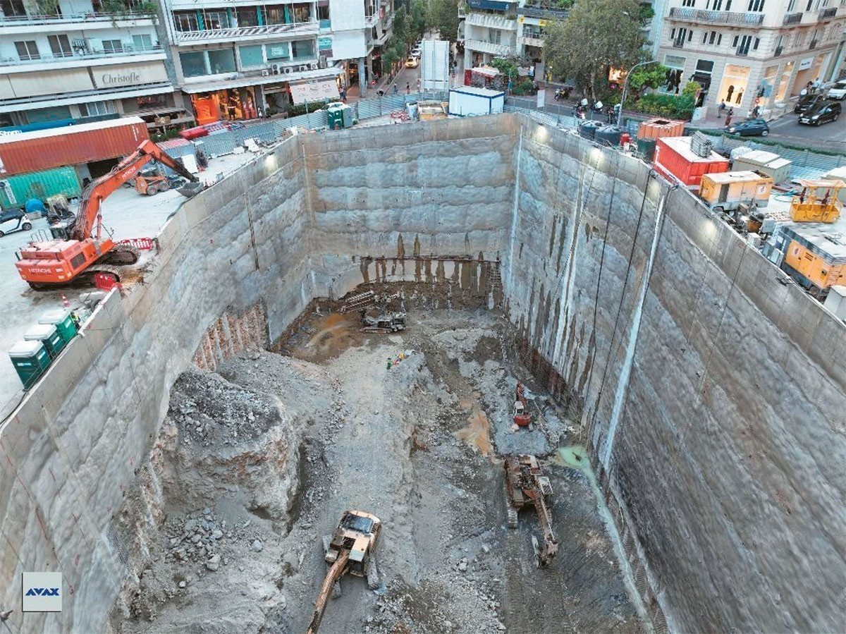 *Στην κεντρική φωτογραφία: Το εργοτάξιο στην πλατεία Κολωνακίου όπου ο όγκος της εκσκαφής που έχει συντελεστεί ισοδυναμεί σήμερα με οκτώ 10όροφες πολυκατοικίες