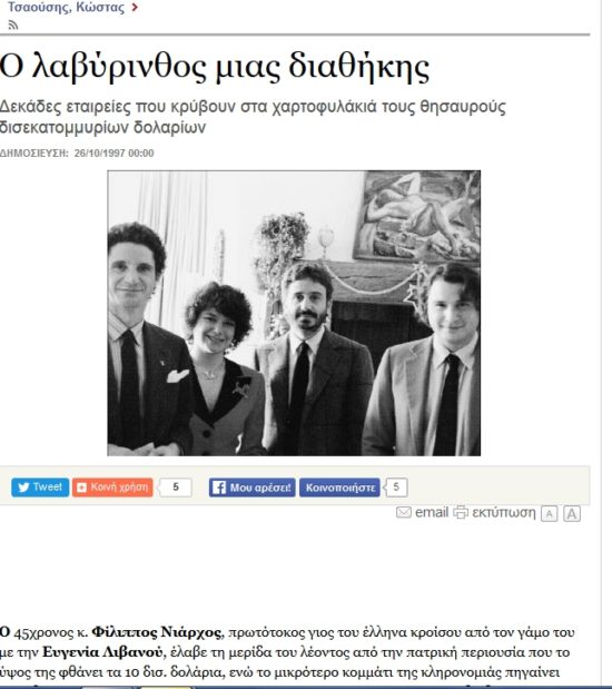 Για όλους όσοι θα ήθελαν να “ταξιδεύσουν ” 20 χρόνια πίσω στο χρόνο όταν “άνοιγε” η διαθήκη του εφοπλιστή Σταύρου Νιάρχου και ο 30χρονος τότε Ανδρέας Δρακόπουλος γινόταν και κληρονόμος. Τότε, έγραψα στο “Βήμα” ένα άρθρο γύρω απο την διαθήκη με καλές, πολύ καλές πληροφορίες.