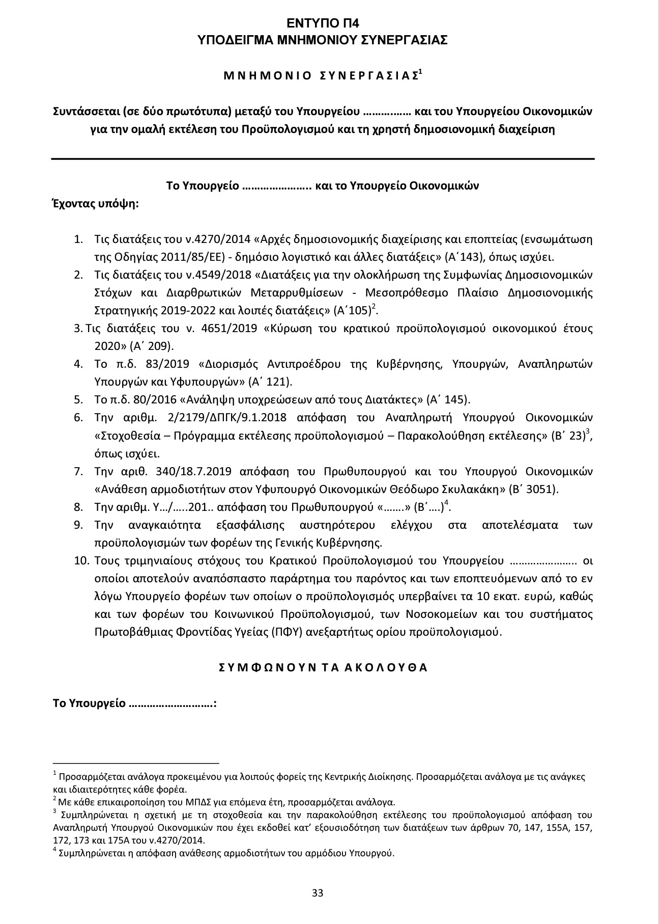«Μνημόνιο» συνεργασίας με όλα τα υπουργεία, για να σεβαστούν τις υποχρεώσεις που απορρέουν από την αυξημένη μεταμνημονιακή Εποπτεία της χώρας από την ευρωπαϊκή «τρόικα» (ΕΕ,ΕΚΤ, ΕΜΣ) υπογράφει το υπουργείο Οικονομικών. Η εγκὐκλιος εφαρμογής του νέου Κρατικού Προϋπολογισμού την οποία υπέγραψε ο υφυπουργός Οικονομικών Θεόδωρος Σκυλακάκης, βάζει φραγμούς και ελέγχους στις δαπάνες και τις προσλήψεις όλων των κρατικών φορέων για το 2020.