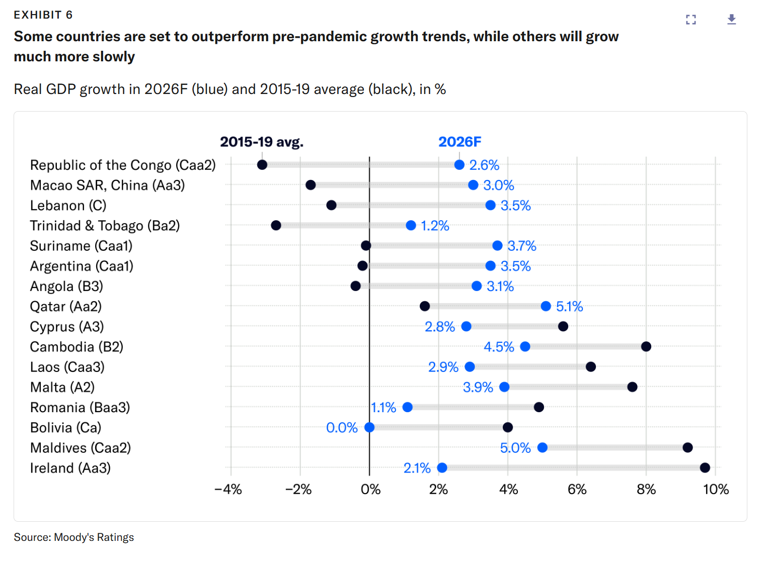 Στο σύνολο της ανάλυσης για το 2026, η Moody’s τονίζει ότι οι περισσότερες χώρες θα διατηρήσουν σχεδόν αμετάβλητα τα πρωτογενή τους αποτελέσματα, με αποτέλεσμα το χρέος να παραμένει στα υψηλά επίπεδα της μετα-πανδημικής περιόδου. Σε αυτό το πλαίσιο, η Ελλάδα περιλαμβάνεται στις χώρες με τη μεγαλύτερη προβλεπόμενη μείωση του δημόσιου χρέους μεταξύ 2025 και 2026.