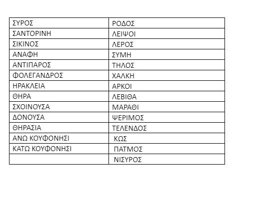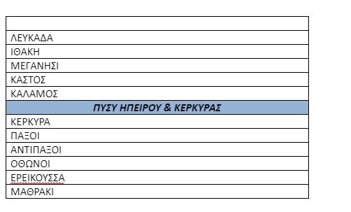 Από την Περιφέρεια Θεσσαλίας: Σκιάθος, Σκόπελος, Αλόννησος και η Β’ Τοπική Διεύθυνση Μαγνησίας.
