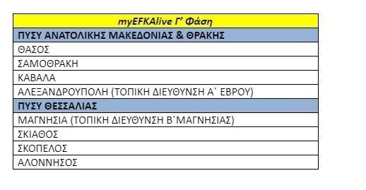 Στην αύξηση των διαδικασιών και τη γεωγραφική επέκταση του myEFKAlive προχωρούν τα Υπουργεία Εργασίας και Κοινωνικών Υποθέσεων και Ψηφιακής Διακυβέρνησης. Ειδικότερα, η δυνατότητα εξ αποστάσεως εξυπηρέτησης του πολίτη από υπάλληλο του e-ΕΦΚΑ μέσω βιντεοκλήσης καλύπτει πλέον γεωγραφικά τους κατοίκους περιοχών που βρίσκονται στις Περιφέρειες Ανατολικής Μακεδονίας και Θράκης και Θεσσαλίας. Συγκεκριμένα, στο myEFKAlive εντάσσονται οι περιοχές: