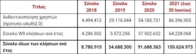 Συγκεκριμένα, από την 1η Ιανουαρίου μέχρι και την 30η Ιουνίου τα συστήματα του Δημοσίου είτε παρείχαν ηλεκτρονικές υπηρεσίες προς τους πολίτες, είτε «μίλησαν μεταξύ τους» αθροιστικά περισσότερες από 150.000.000 φορές, αποτρέποντας έως αντίστοιχο αριθμό φυσικών επισκέψεων από πολίτες προς υπηρεσίες.
