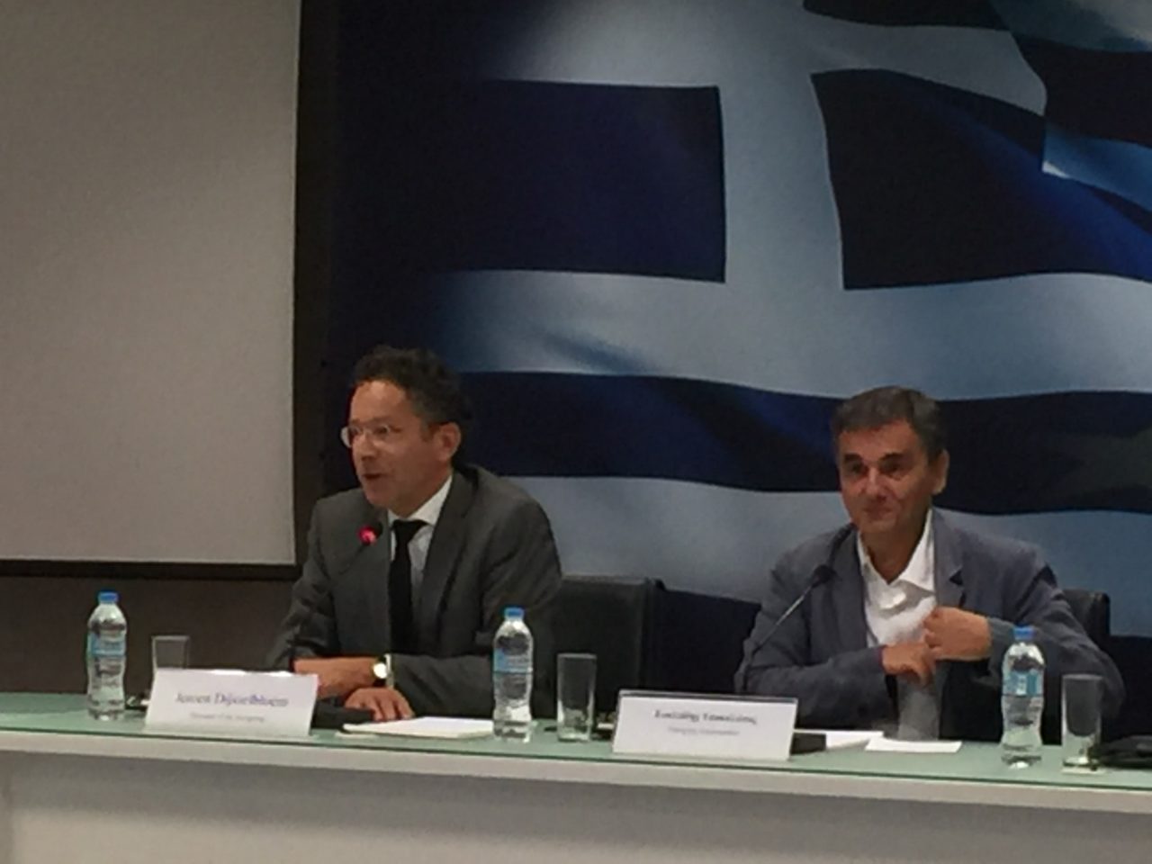 Από την πλευρά του ο κ. Τσακαλώτος απαντώντας στις ερωτήσεις για το ενδεχόμενο νέων μέτρων είπε ότι παρότι υπάρχει υπο-απόδοση σε κάποιους τομείς καταγράφεται υπεραπόδοση σε άλλους τομείς και τόνισε ότι θα υπάρξει υπέρβαση του στόχου για το 2017. Ο κ. Τσακαλώτος τόνισε ότι ο κ. Ντάισελμπλουμ δεν θα μπορούσε να είναι πιο ξεκάθαρος, «ο στόχος είναι να βγούμε από το πρόγραμμα χωρίς την ανάγκη για ένα νέο πρόγραμμα». Παράλληλα, ο Έλληνας υπουργός είπε ότι η Ελλάδα θα ξαναβγεί στις αγορές χωρίς όμως να προσδιορίσει το χρόνο.