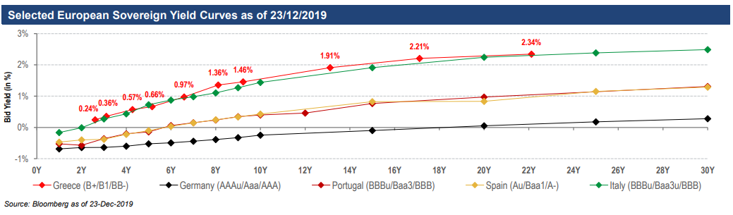 Το κόστος δανεισμού στα δεκαετή ομόλογα υποχώρησε από το 4,4% στο 1,5% ενώ οι αποδόσεις των 3μηνων και 6μηνων εντόκων γραμματίων του δημοσίου έγιναν αρνητικές. (αρνητικά επιτόκια βραχυπρόθεσμου δανεισμού)