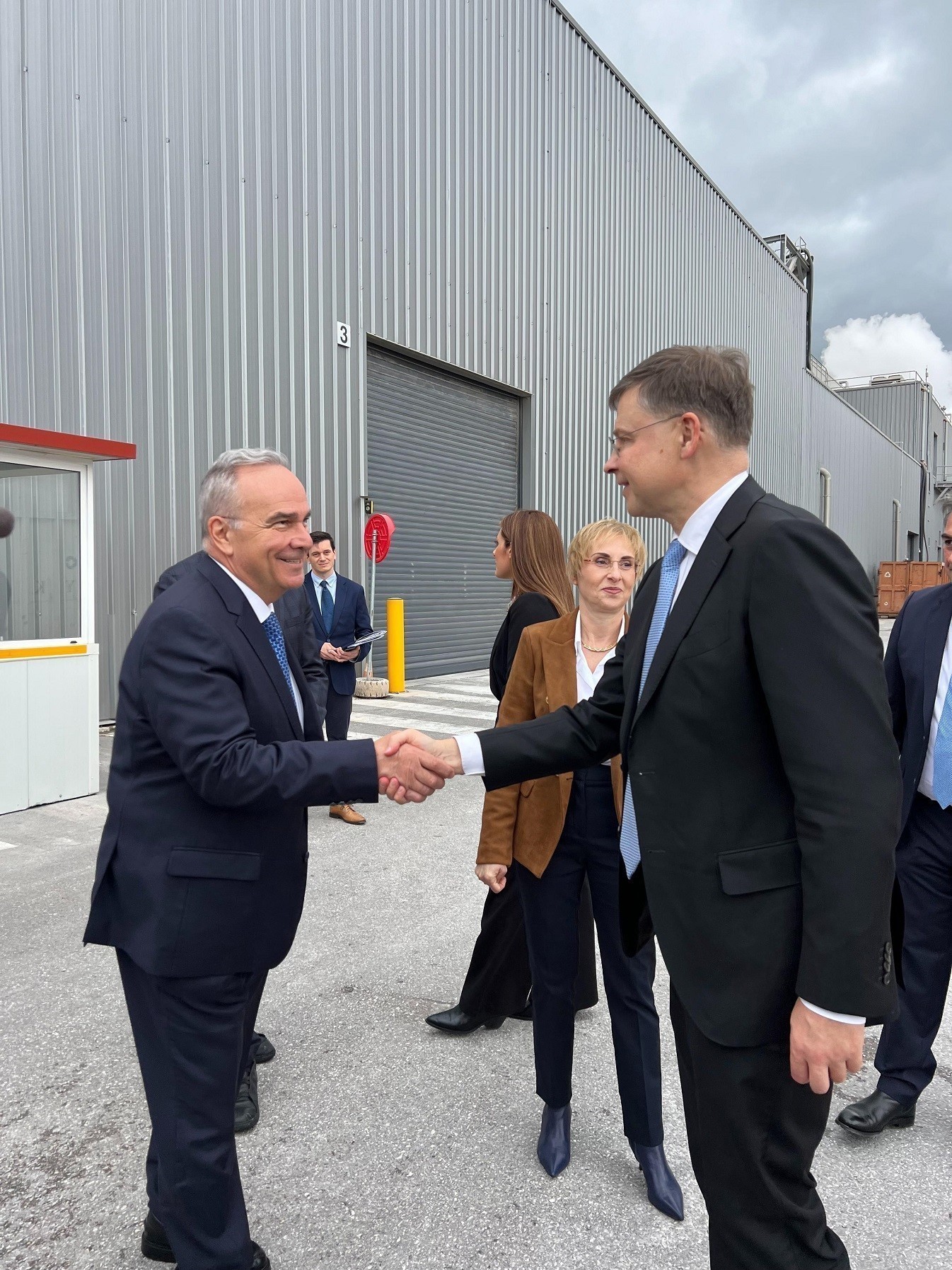 Ο Αναπληρωτής Υπουργός Εθνικής Οικονομίας και Οικονομικών Νίκος Παπαθανάσης, υπογράμμισε: «Η σημερινή επίσκεψη αποτελεί μια καλή αφορμή προκειμένου να αναδειχθεί το απτό αποτέλεσμα του Μηχανισμού Ανάκαμψης και Ανθεκτικότητας στην ενίσχυση της βιομηχανικής βάσης της Ελλάδας, στην ενίσχυση της ελληνικής οικονομίας. Η Ελλάδα παραμένει σταθερά στις πρώτες θέσεις απορρόφησης των ευρωπαϊκών πόρων και δίνει ιδιαίτερη έμφαση στην υλοποίηση των μεταρρυθμίσεων. Είμαστε μια κυβέρνηση που πιστεύει ότι χωρίς μεταρρυθμίσεις η πρόοδος δεν μπορεί να μετουσιωθεί σε μέρισμα για την κοινωνία. Συνεχίζουμε με προσήλωση στην εκπλήρωση όλων των έργων και των οροσήμων εντός του χρονοδιαγράμματος του Ταμείου Ανάκαμψης. Άλλωστε, δεν επιθυμούμε- και για εμάς που περάσαμε τρία μνημόνια δεν επιτρέπεται- να απωλέσουμε ένα ευρώ από τους ευρωπαϊκούς πόρους, που πρέπει να κατευθυνθούν προς όφελος όλων των συμπολιτών μας. Με εγκεκριμένη χρηματοδότηση από το RRF ύψους 77,8 εκατομμυρίων ευρώ σε επιχορηγήσεις και δάνεια, το συγκεκριμένο έργο συνιστά μια στρατηγική επένδυση που συνολικά υπερβαίνει τα 100 εκατομμύρια ευρώ. Μια επένδυση που υποστηρίζει την πράσινη μετάβαση, δημιουργεί ποιοτικές θέσεις εργασίας και συμβάλλει στην ενίσχυση της ανταγωνιστικότητας και της περιφερειακής ανάπτυξης. Με την ευκαιρία της επίσκεψης επαναλαμβάνω την εξαιρετική συνεργασία που έχουμε με την Ευρωπαϊκή Επιτροπή και τη βούληση μας να επιταχυνθούν οι αναγκαίες μεταρρυθμίσεις, ευελιξίες και απλοποιήσεις προκειμένου η Ένωση να εξασφαλίσει τη στρατηγική της αυτονομία σε εποχές με αντίθετους ανέμους . Προκειμένου η Ευρώπη να διαδραματίσει τον ιστορικό ρόλο που της αρμόζει. Προκειμένου, όλοι μαζί, να διασφαλίσουμε ένα ασφαλές παρόν και ένα αύριο ευημερίας για τους συμπολίτες μας. Ένα κοινό σπίτι όπου η οικονομική πρόοδος μετουσιώνεται σε κοινωνική συνοχή και ατομική προκοπή. Στο σημείο αυτό να ευχαριστήσω τον Επίτροπο κ. Ντομπρόβσκις για την εξαιρετική και παραγωγική συνεργασία που έχουμε προς όφελος της Ελλάδας και της Ευρώπης».