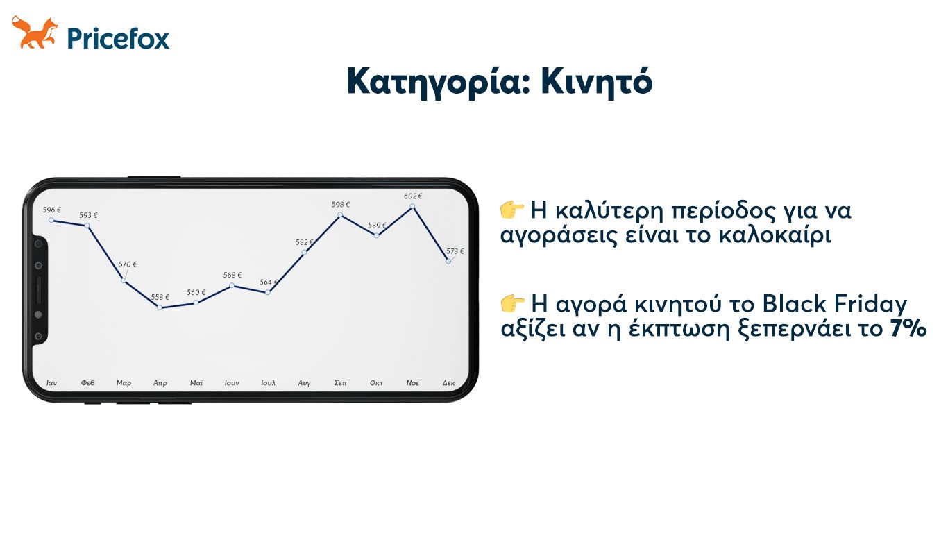 Εάν επιλέξουμε να αγοράσουμε smartphone την περίοδο του Black Friday, τότε για να είναι έξυπνη και συμφέρουσα η αγορά μας θα πρέπει το προϊόν που θα διαλέξουμε να έχει έκπτωση πάνω από 7% εκείνη την περίοδο, καθώς αυτή είναι κατά μέσο όρο η διαφορά ανάμεσα στις τιμές του Νοεμβρίου με αυτές του καλοκαιριού.