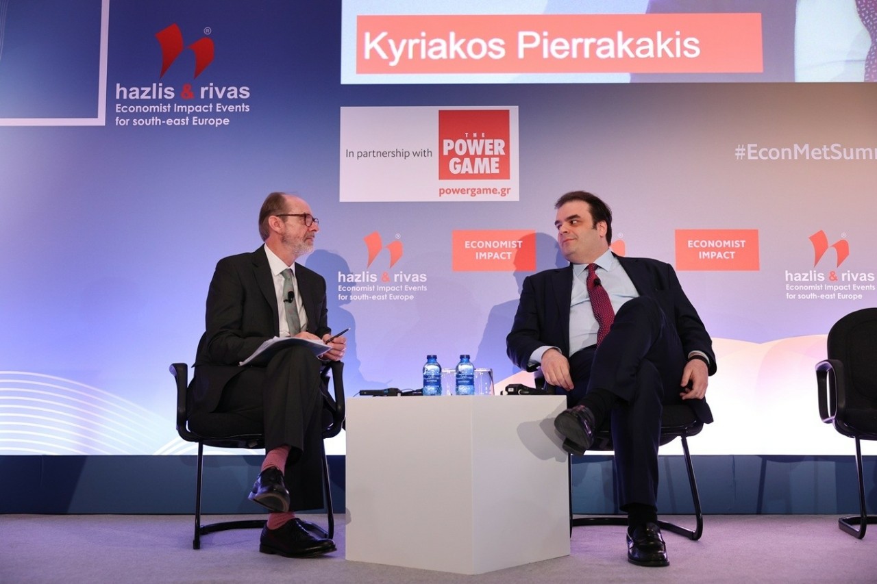 Το μήνυμα αυτό έστειλε ο Υπουργός Εθνικής Οικονομίας και Οικονομικών Κυριάκος Πιερρακάκης, συμμετέχοντας στο 5ο Economist Thessaloniki Metropolitan Summit, σε συζήτηση με τον Αρχισυντάκτη Διεθνών Θεμάτων του The Economist, Alasdair Ross.