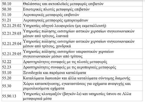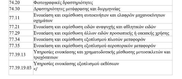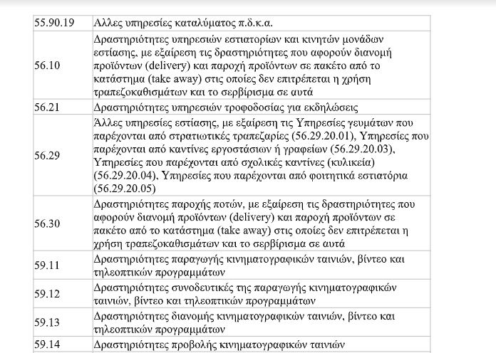 i) είτε έχουν ενεργό κύριο ΚΑΔ στις 20.03.2020 έναν από τους περιγραφόμενους στο συνημμένο πίνακα του Παραρτήματος ΙΙΙ, ο οποίος και αποτελεί αναπόσπαστο μέρος της παρούσας, ή των οποίων τα ακαθάριστα έσοδα ενεργού κατά την 20.03.2020 ΚΑΔ δευτερεύουσας δραστηριότητας από τους περιγραφόμενους στο συνημμένο του Παραρτήματος ΙΙΙ, όπως αυτά προκύπτουν από την αρχική δήλωση φόρου εισοδήματος φορολογικού έτους 2018, είναι μεγαλύτερα από τα ακαθάριστα έσοδα που αντιστοιχούν στον κύριο ΚΑΔ στις 20.03.2020,