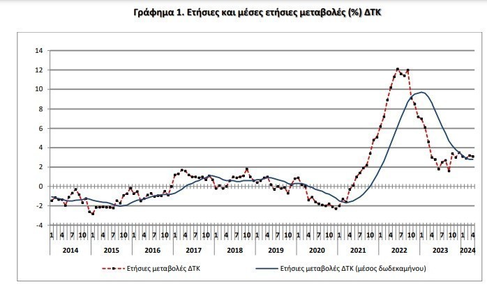 0,1% στην ομάδα Διαρκή αγαθά-Είδη νοικοκυριού και υπηρεσίες, λόγω αύξησης κυρίως των τιμών στις οικιακές υπηρεσίες. Μέρος της αύξησης αυτής αντισταθμίστηκε από τη μείωση κυρίως των τιμών στα είδη άμεσης κατανάλωσης νοικοκυριού. - 3,6% στην ομάδα Υγεία, λόγω αύξησης κυρίως των τιμών σε: φαρμακευτικά προϊόντα, ιατρικές-οδοντιατρικές και παραϊατρικές υπηρεσίες, νοσοκομειακή περίθαλψη.