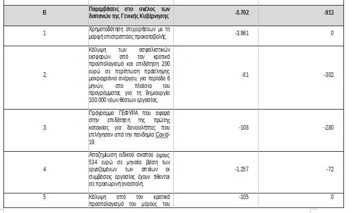 – συνεπώς «περαιτέρω επέκταση υφιστάμενων μέτρων ή υιοθέτηση νέων πολιτικών, αναλόγως και με την πορεία της πανδημίας, θα αποτυπωθούν στην Εισηγητική Έκθεση του Προϋπολογισμού 2021».