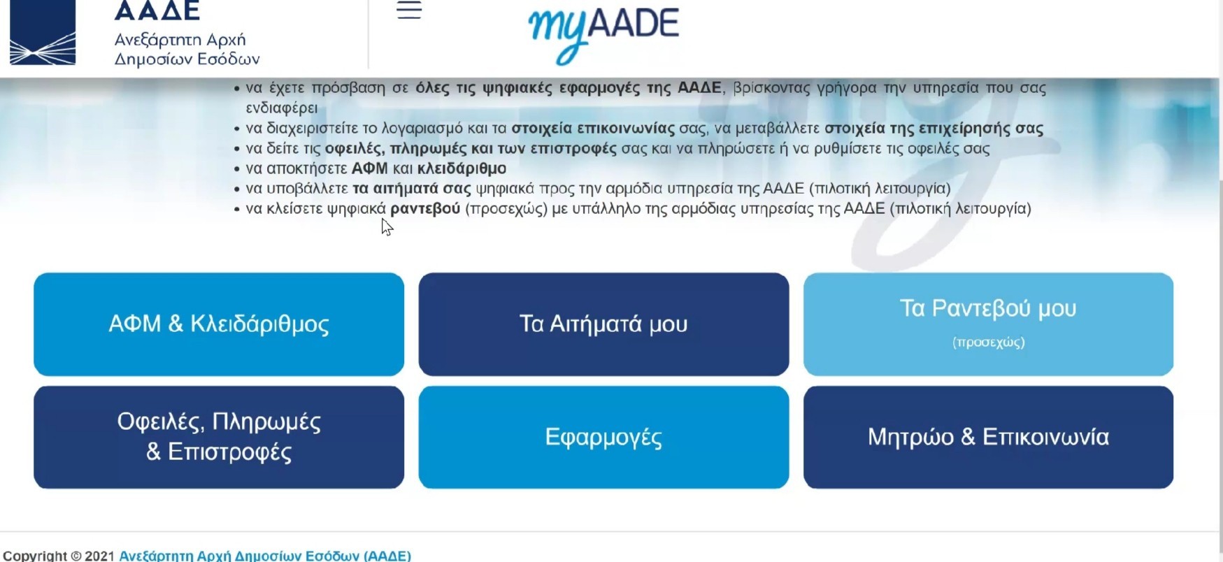 - να κλείσουν ψηφιακά ραντεβού (προσεχώς) με υπάλληλο της αρμόδιας υπηρεσίας της ΑΑΔΕ (πιλοτική λειτουργία)