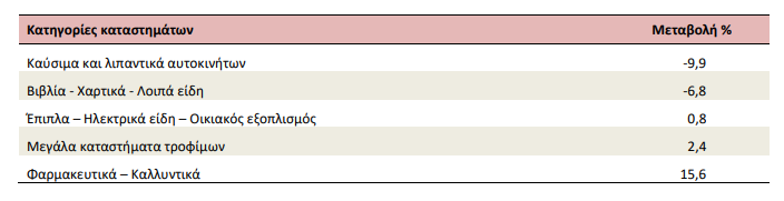 Η μείωση του Δείκτη Κύκλου Εργασιών κατά 3,0% τον μήνα Φεβρουάριο 2021, σε σύγκριση με τον αντίστοιχο δείκτη του Φεβρουαρίου 2020, προήλθε, κυρίως, από τις μεταβολές στις παρακάτω κατηγορίες: